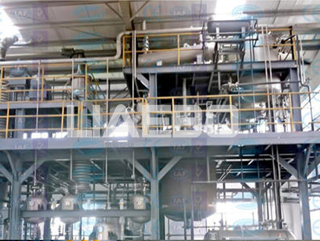 高位槽液體計(jì)量罐、生產(chǎn)平臺(tái)、地面真空上料、隔膜泵輸送回收廢水。