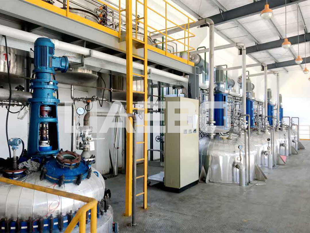 樹脂生產(chǎn)線,主要解決配料、滴加、升溫、降溫、攪拌等過(guò)有問(wèn)題;該生產(chǎn)線5臺(tái)5000L高速攪拌反應(yīng)釜;儲(chǔ)罐區(qū)(立式儲(chǔ)罐)自動(dòng)配料,蒸汽加熱、冷水降溫、自動(dòng)溫控系統(tǒng),真空上料、真空脫水、滴加釜控制流速、緩慢滴加,冷凝系統(tǒng)、油水分離、液料回收,廢水凈廢水處理后可再循環(huán)使用,流量計(jì)控制加料速度。