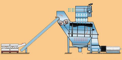 6.粉體輸出可配套管鏈輸送機(jī)、螺旋輸送機(jī)、氣力輸送系統(tǒng)等組成拆包輸送線