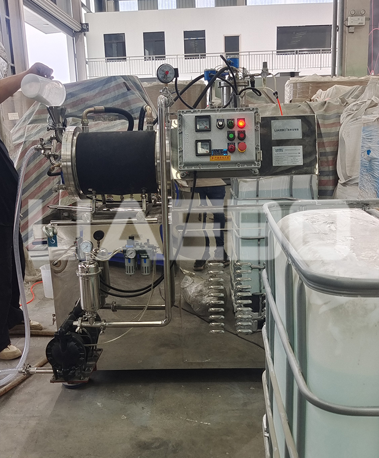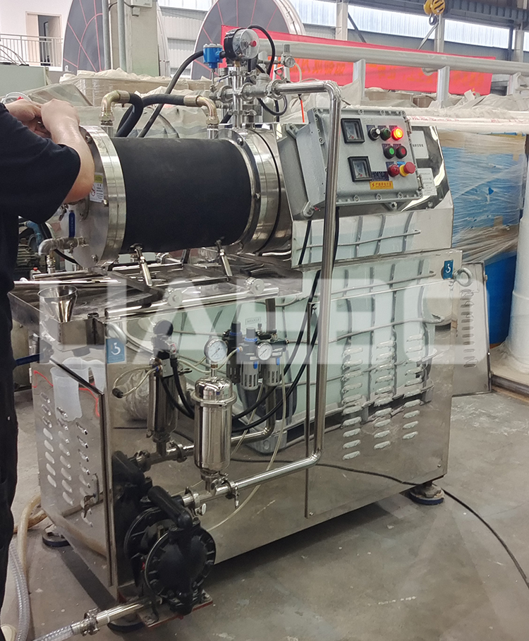 江蘇某科技有限公司30L棒銷(xiāo)式納米砂磨機(jī)調(diào)試成功