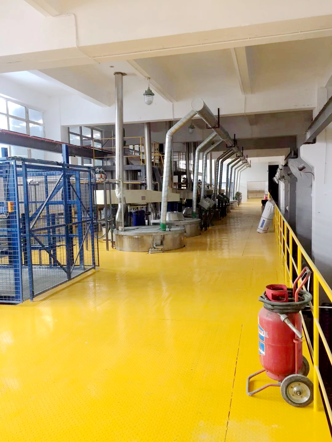 國(guó)內(nèi)環(huán)氧地坪材料生產(chǎn)大多數(shù)環(huán)境、設(shè)備、操作比較落后,主要靠人工操作,生產(chǎn)效率底下、產(chǎn)品質(zhì)量不穩(wěn)定,批量小、色差大,等等;東莞某地坪材料企業(yè)積累多年生產(chǎn)經(jīng)驗(yàn),蓄勢(shì)待發(fā),2018年舉重資全力打造全自動(dòng)生產(chǎn)線(xiàn),年產(chǎn)10萬(wàn)噸環(huán)氧地坪涂料(包括水性生產(chǎn)線(xiàn)、固化劑),一舉成為行業(yè)領(lǐng)頭企業(yè),全自動(dòng)配料(樹(shù)脂、溶劑、粉體料)、高效強(qiáng)力分散機(jī)(特殊設(shè)計(jì))、自動(dòng)化包裝機(jī),整個(gè)流水線(xiàn)產(chǎn)能高、品質(zhì)穩(wěn)定、生產(chǎn)成本得到有效優(yōu)化、個(gè)人勞動(dòng)強(qiáng)度完全改善、成批生產(chǎn)色差消除、淡旺季都應(yīng)付自如;產(chǎn)品品質(zhì)享譽(yù)海內(nèi)外。