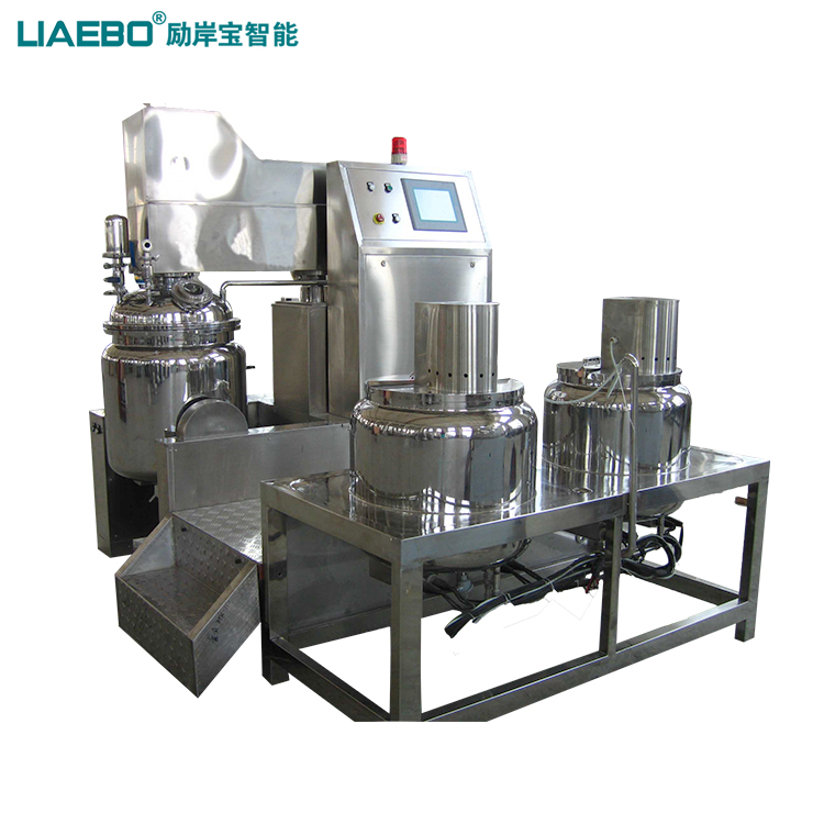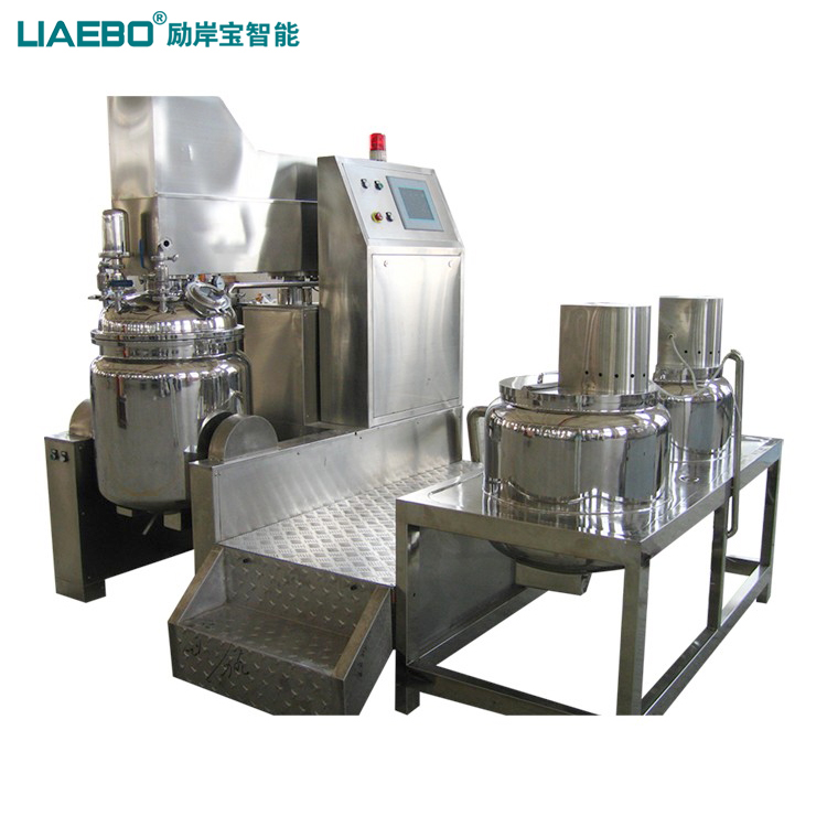 在高粘性乳化物,特別是膏霜,軟膏,乳劑類產(chǎn)品的制造工藝中,通常造成問題的是分散相的粒徑大和攪拌時把空氣混入制品中,粒徑過大導(dǎo)致乳狀物不穩(wěn)定,缺少光澤,制品中混入空氣則會使制品氣泡化,細(xì)菌污染,易氧化及外觀不光滑。針對兩大問題,我公司開發(fā)出的真空均質(zhì)乳化機(jī)組,由均質(zhì)攪拌器,中心葉片攪拌,刮壁攪拌各自具有的特點(diǎn)相輔相成,組合成科學(xué)的攪拌方式,以達(dá)到完美混合制品。采用抽真空的方式,使所生產(chǎn)的制品在攪拌過程中不再混入氣泡,從而保證可制造出富有光澤,細(xì)膩及延展性良好的產(chǎn)品。