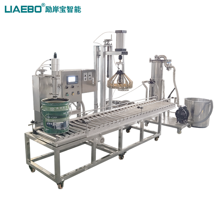 液體灌裝機(jī)是以重量方式精確地將大量的散裝液體物料分裝到各種容器、鐵桶或塑料桶中,用于 4L~30L 桶自動(dòng)定量灌裝。廣泛應(yīng)用于化工、農(nóng)藥等與液體狀物料相關(guān)的行業(yè),適用在涂料、油漆、油墨、膠粘劑、固化劑、樹(shù)脂、染料、清洗劑、機(jī)油、甘油、潤(rùn)滑油、食用油、香精、溶劑、助劑、食品添加劑、農(nóng)藥及其他危險(xiǎn)性化學(xué)產(chǎn)品等產(chǎn)品中。單頭半自動(dòng)灌裝機(jī)自動(dòng)化控制儀表接收稱(chēng)重傳感器給出的重量信號(hào),單頭/大流量/小流量控制進(jìn)料閥,實(shí)現(xiàn)自動(dòng)灌裝的目的:并配有半自動(dòng)輸送輥道及壓蓋/夾蓋/裝置,完成物料灌裝與密封過(guò)程。主要用于馬口鐵桶、塑料桶的定量自動(dòng)灌裝,也適用于食品、制藥、化工等多種行業(yè)液體類(lèi)物料的自動(dòng)定灌裝。