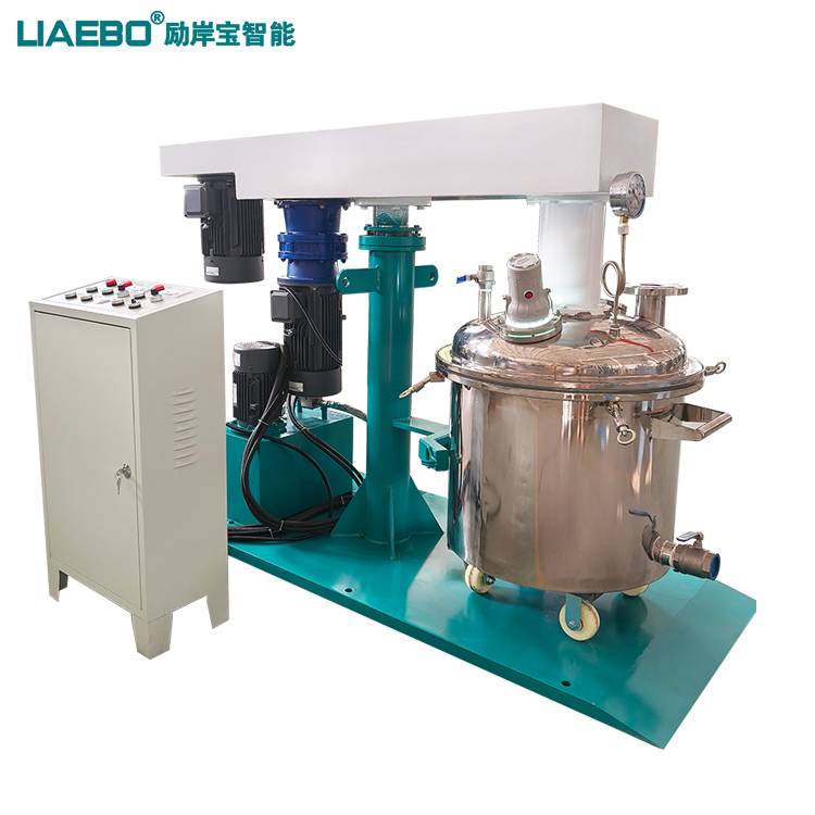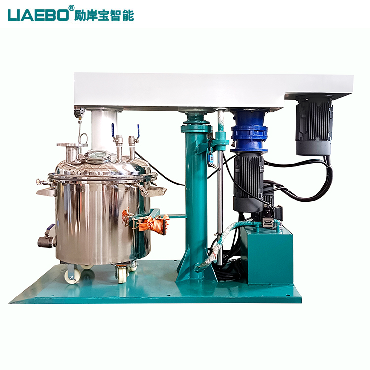 液壓升降同心雙軸攪拌機(jī)集高速分散和低速?gòu)?qiáng)力攪拌于一體,對(duì)中高粘度及觸變性物料具有很好的適應(yīng)性。多種攪拌方式可選,分散、攪拌可同時(shí)進(jìn)行,能獲得理想效果。該機(jī)適用于各種物料的攪拌、混合和分散溶解。操作簡(jiǎn)單,適應(yīng)性強(qiáng),是理想的攪拌、分散等多功能設(shè)備。可根據(jù)客戶的物料的特性和生產(chǎn)工藝要求制定合理配置。刮壁式錨式攪拌器在動(dòng)力機(jī)構(gòu)的驅(qū)動(dòng)下進(jìn)行旋轉(zhuǎn),在旋轉(zhuǎn)過(guò)程中,驅(qū)使物料做軸向旋轉(zhuǎn)和徑向旋轉(zhuǎn),使之?dāng)嚢杌旌暇鶆颍瑫r(shí)在攪拌器的四周帶有四氟刮壁材料,對(duì)桶體內(nèi)壁及桶底進(jìn)行刮拭,無(wú)殘留刮壁;高速分散盤在高速狀態(tài)下,具有很高的剪切力,短時(shí)間內(nèi)將物料分散均勻。通過(guò)控制油泵工作帶動(dòng)液壓機(jī)架升降,液壓機(jī)架帶動(dòng)整個(gè)傳動(dòng)機(jī)構(gòu)和工作組升降。