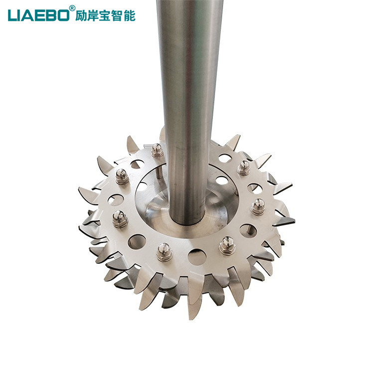 高速分散機的鋸齒狀圓形分散盤在容器內(nèi)高速分散完成固液分散、濕潤、解聚、穩(wěn)定過程。