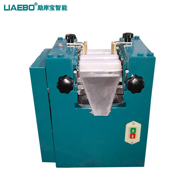 小型三輥研磨機(jī)適用于需要分散而細(xì)度要求較高的膏體或高粘度物料使用;通過水平的三根輥筒的表面相互擠壓,手搖式調(diào)節(jié)輥筒之間的間距,以不同速度的摩擦達(dá)到研磨效果。裝有緊急制動(dòng)按鈕,防止落入異物導(dǎo)致的設(shè)備損壞。輥?zhàn)邮褂锰厥庥操|(zhì)合金澆鑄而成,也可以使用純氧化鋯材質(zhì)。小型三輥研磨機(jī)由三個(gè)輥筒組成,裝在一個(gè)機(jī)架上,由電動(dòng)機(jī)直接帶動(dòng)。一般輥筒間的轉(zhuǎn)動(dòng)方向不同,前輥向前轉(zhuǎn)動(dòng),中輥向后轉(zhuǎn)動(dòng)。輥?zhàn)愚D(zhuǎn)速前輥快、后輥慢。中間輥固定,前后兩輥裝在滑道上,有彈簧裝置,用手輪調(diào)節(jié)前后輥與中輥的距離。物料由后輥與中輥之間進(jìn)入,受到輥筒的擠壓,產(chǎn)品顆粒變細(xì),然后由快輥帶出,快輥末端裝有刮刀,使物料與輥筒分離,落入收集桶內(nèi)。