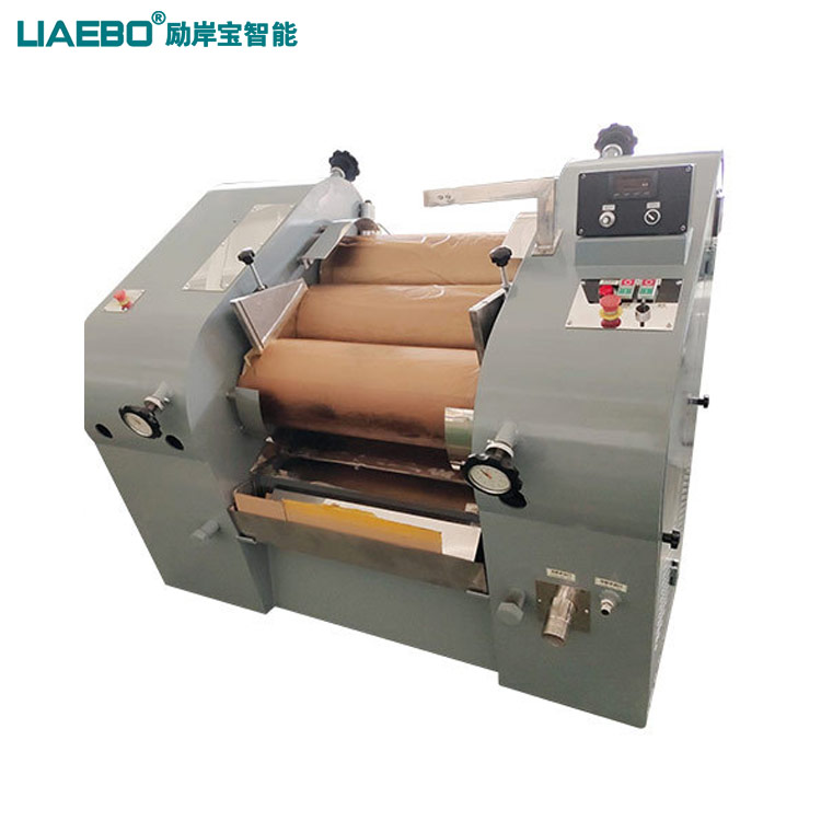 三輥研磨機(jī)主要用于各種油漆、油墨、顏料、塑料、食品等膏狀漿料之用,主要為油漆、油墨等高粘度物料的研磨分散之主要設(shè)備。該機(jī)通過機(jī)器水平方向排列的三根輥筒表面相互擠軋及不同的速度的摩擦而達(dá)到研磨作用,研磨物料一般只要研磨二次就可以達(dá)到要求,難研物料必須研磨多次,方能達(dá)到要求。工作時間快、慢輥調(diào)節(jié)到適當(dāng)位置,啟動機(jī)器,然后將需要研磨的漿料加入中輥與慢輥之間銅刀處,漿料經(jīng)過中、慢輥表面擠軋后,由中輥帶給快輥,再由緊貼表面的出料刮刀予以刮下,通過裝有欄板的刀板,流入盛料筒,由此構(gòu)成整個研磨的過程。